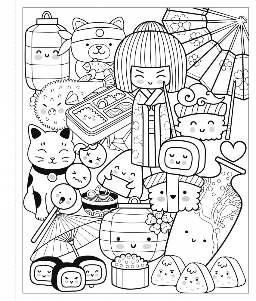 - Enjoy more than 45 pages of coloring art bursting with cuteness