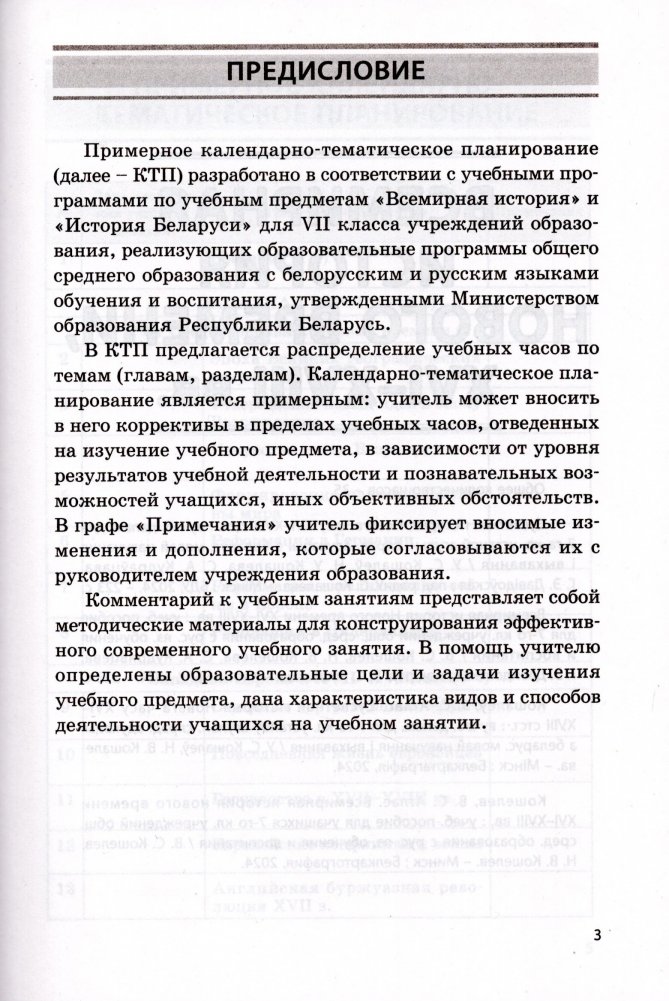 Примерное календарно-тематическое планирование разработано в соответствии с учебными программами по учебным предметам "Всемирная история" и "История Беларуси" для VII класса учреждений образования, реализующих образовательные программы общего среднего образования с белорусским и русским языками обучения и воспитания, утвержденными Министерством образования Республики Беларусь.