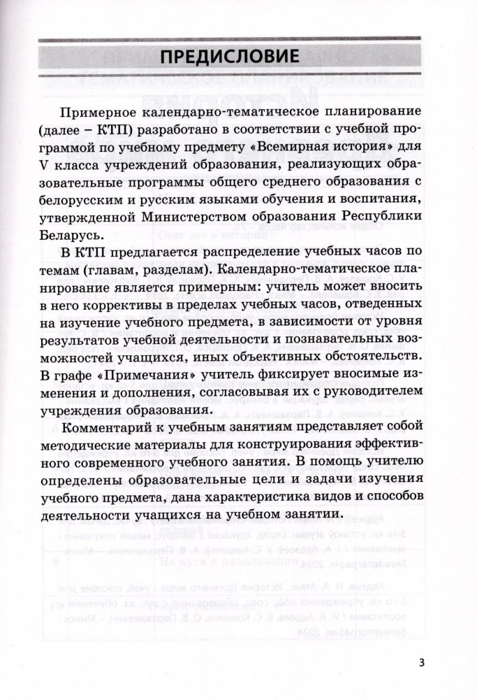 Примерное календарно-тематическое планирование разработано в соответствии с учебной программой по учебному предмету "Всемирная история" для V класса учреждений образования, реализующих образовательные программы общего среднего образования с белорусским и русским языками обучения и воспитания, утвержденной Министерством образования Республики Беларусь.