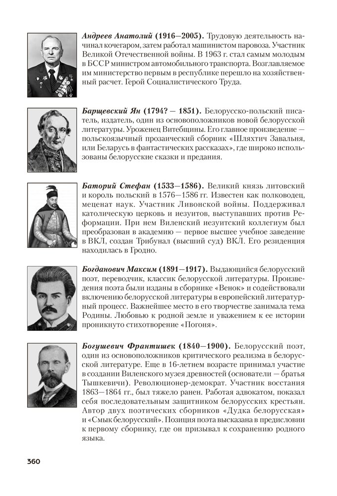 В книге представлен теоретический материал и практические задания, соответствующие содержанию учебных программ по предмету «История Беларуси» для 6—9 и 10—11 классов. Схемы, иллюстрации, таблицы, картосхемы содействуют лучшему усвоению учебного материала. В конце пособия приведены ответы к тестовым заданиям, терминологический, хронологический и биографический справочники.