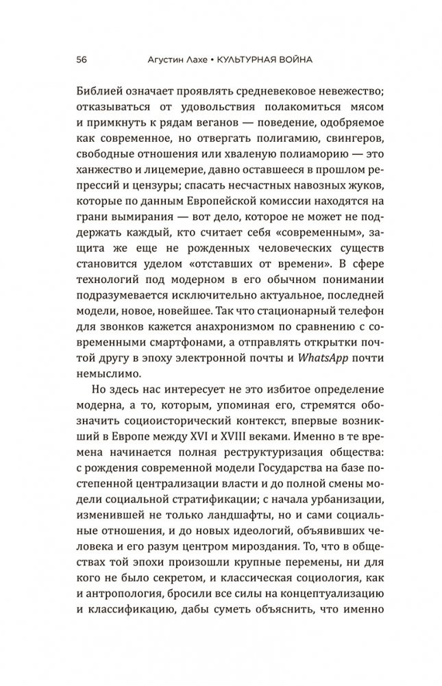 Известный писатель, политолог, интеллектуал, знаменитый своими лекциями, Агустин Лахе, опираясь на обширное литературное наследие самых выдающихся историков, социологов, философов и экспертов в области культуры и политики, дает определение понятию культурной войны и показывает, в какой степени культура обрела статус главного трофея власти, как именно зарождались и набирали силу подобные войны, начиная с эпохи модерна и до наступившего в наши дни постмодерна, и как в них выстоять. Параллельно он исследует, насколько хорошо разобрались в сути явления новые левые, в то время как правые недооценивали влияние культуры. Наконец, Лахе предлагает методы и средства, необходимые для рождения новых правых.