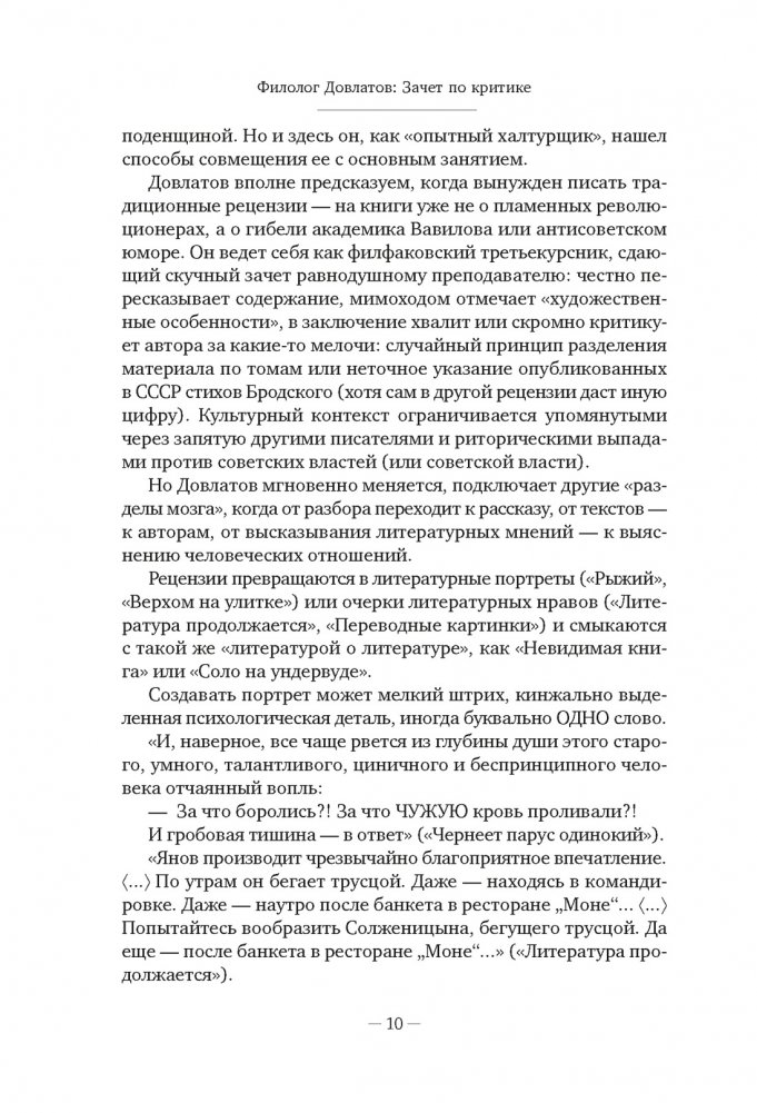 В первом разделе собрана его филологическая проза, печатавшаяся в эмигрантских газетах и журналах. Довлатов размышляет о судьбе и путях развития русской литературы; пишет о классиках — Пушкине, Толстом и Чехове; о своих современниках — Солженицыне, Викторе Некрасове, Аксенове, Войновиче, Бродском; о писателях третьей волны эмиграции и о тех, кто остался в Советском Союзе. Суждения и оценки Довлатова подчас точны, подчас субъективны, но неизменно остры и интересны: в его статьях и выступлениях обозначены ключевые проблемы и тенденции литературного процесса 1960–1980-х годов, участником которого был он сам.
