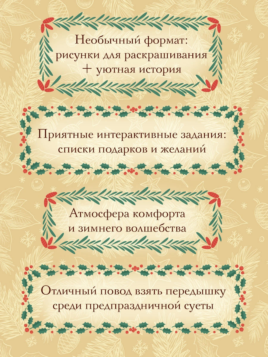 Эта раскраска поможет замедлиться, услышать себя, составить список подарков и своих заветных желаний, но главное – поверить в чудо!