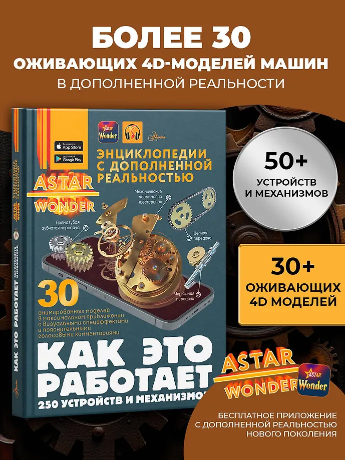 Красочные иллюстрации, понятные схемы и исчерпывающие пояснения делают сложные инженерные концепции доступными даже для детей и подростков. Со страниц книги они узнают, как устроены бытовая техника и электроника, строительные инструменты и энергетические установки, автомобили, самолеты, космические станции и многое-многое другое. Но и это еще не все: с помощью бесплатного приложения на смартфоне или планшете изучаемые объекты можно оживить! Теперь статичные изображения превращаются на экране в 4D-модели, которые можно передвигать и вращать, наблюдая за их работой в реальном времени. Кроме того, это увлекательное действо сопровождается познавательной информацией, которую можно прослушать в звуковом формате.