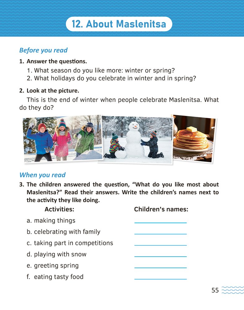 В книге для чтения представлены увлекательные тексты о нашей стране на английском языке. Каждая история построена на коммуникативном принципе: сначала проводится подготовка к теме и формату текста, затем следуют задания на общее и детальное понимание прочитанного, грамматические задания, далее предлагаются вопросы и мини-проекты. Пособие полностью соответствует учебной программе и подойдет для использования на основных и дополнительных занятиях.