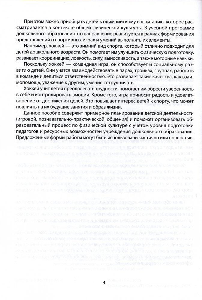Содержание пособия направлено на реализацию задач образовательной области "Физическая культура" учебной программы дошкольного образования. В пособии предложены разнообразные формы организации познавательно-практической, игровой деятельности и общения в старшей группе учреждения дошкольного образования по формированию умения выполнять элементы спортивной игры хоккей в рамках физкультурно-оздоровительной деятельности.