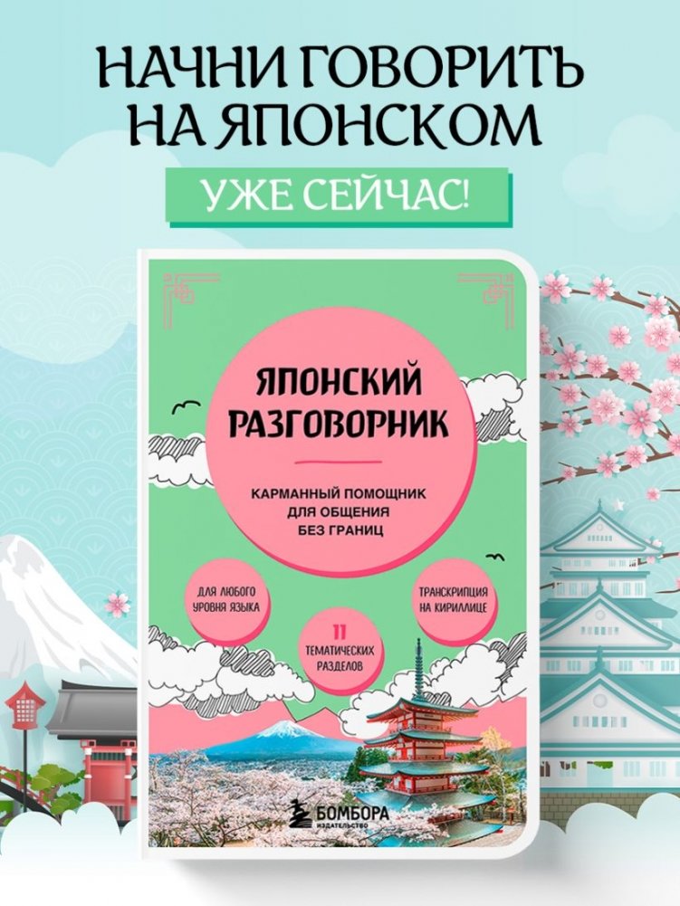 Японский разговорник содержит типовые фразы и выражения, встречающиеся в повседневной жизни. Тематические разделы помогут изъясниться на японском языке в различных ситуациях: от заселения в отель до посещения музеев. Выражения снабжены транскрипцией на кириллице по системе Поливанова, благодаря чему разговорник становится доступным для людей с начинающим уровнем изучения языка. Издание предназначено для русскоговорящих, выезжающих в Японию, а также подходит для самостоятельного изучения разговорного языка.