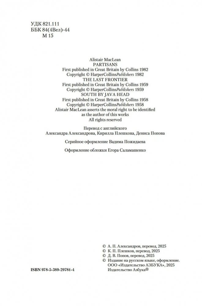 Алистер Маклин (1922–1987) — британский писатель, автор 28 остросюжетных романов и приключенческих рассказов, сценарист. Его имя широко известно читателям всего мира. Книги Маклина разошлись тиражом более 150 миллионов экземпляров, по его романам, сценариям и сюжетам было снято 18 фильмов. В 1983 году Университет Глазго присвоил писателю степень доктора литературоведения.