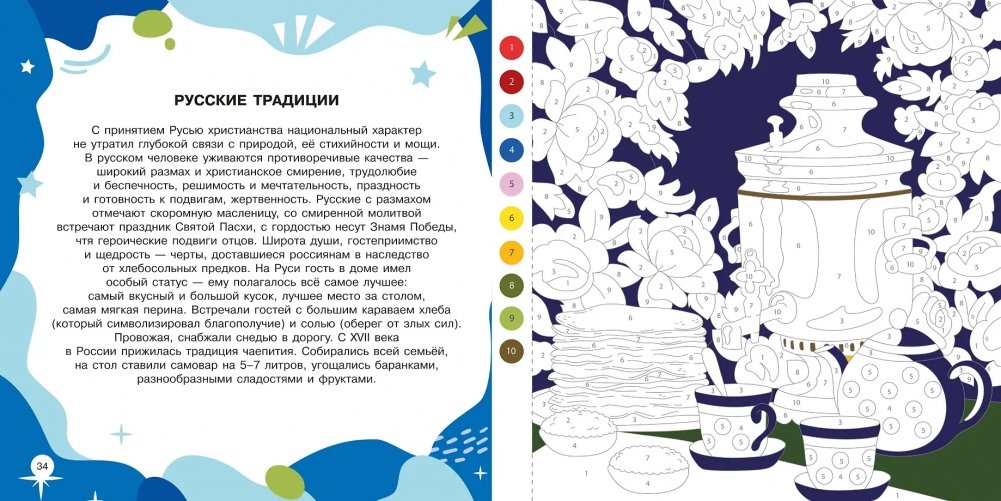 Раскраска по номерам "Россия. Самые красивые и знаменитые" создана специально для творческих и любознательных ребят. "Оживляя" рисунки по числам, юные художники потренируют мелкую моторику, разовьют графические навыки, проявят творческие способности, расширят кругозор. Раскрасив все рисунки в альбоме, ребёнок сможет устроить настоящую выставку из готовых работ. Для среднего школьного возраста.