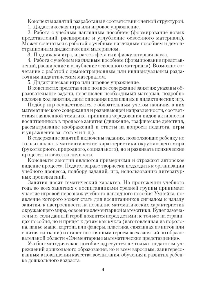 Содержание книги направлено на реализацию задач образовательной области «Элементарные математические представления» действующей учебной программы дошкольного образования в средней группе (от 4 до 5 лет). Включает перспективный тематический план и конспекты проведения занятий.