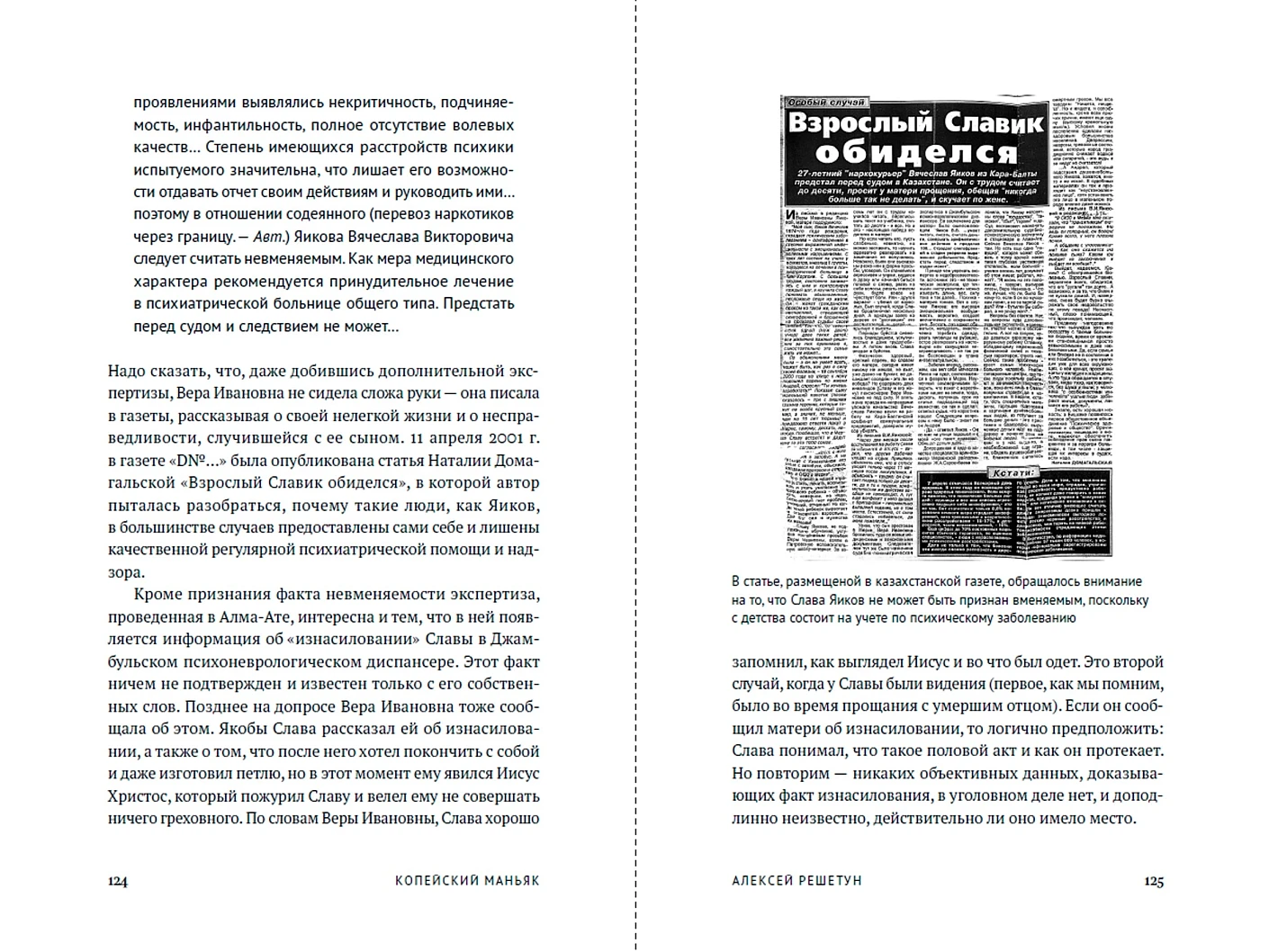 Перед читателем предстает суровая реальность шахтерского городка с его криминальной средой. В центре сюжета — Вячеслав Яиков, задержанный на месте последнего убийства. Его история — трагедия человека с тяжелыми психическими расстройствами, чья жизнь стала фоном для серии жестоких деяний. В книге раскрываются детали его состояния, мотивы, методы, а также отчаянная борьба матери за сына в суде. Это не просто хроника серийного убийцы, но и глубокое размышление о влиянии социальных факторов на развитие преступных наклонностей.