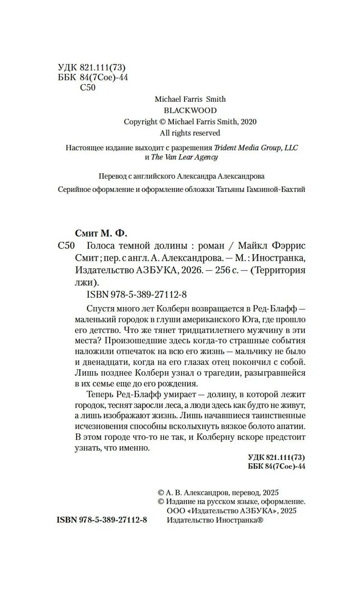 Теперь Ред-Блафф умирает — долину, в которой лежит городок, теснят заросли леса, а люди здесь как будто не живут, а лишь изображают жизнь. Лишь начавшиеся таинственные исчезновения способны всколыхнуть вязкое болото апатии. В этом городе что‑то не так, и Колберну вскоре предстоит узнать, что именно.