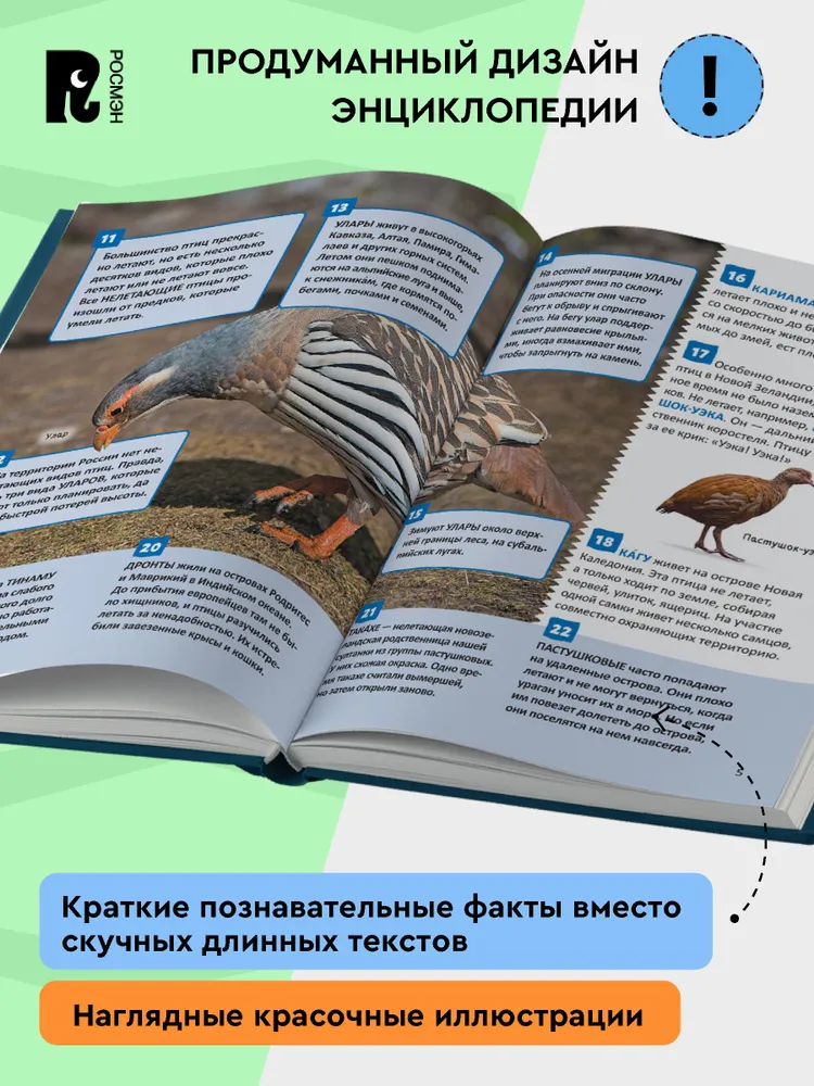 Познавательная, красочно иллюстрированная энциклопедия о жизни птиц. 250 удивительных фактов о дроздах, сороках, колибри и других наших пернатых соседях по планете. Издание станет отличным подарком мальчику и девочке, и надежным помощником в учебе.