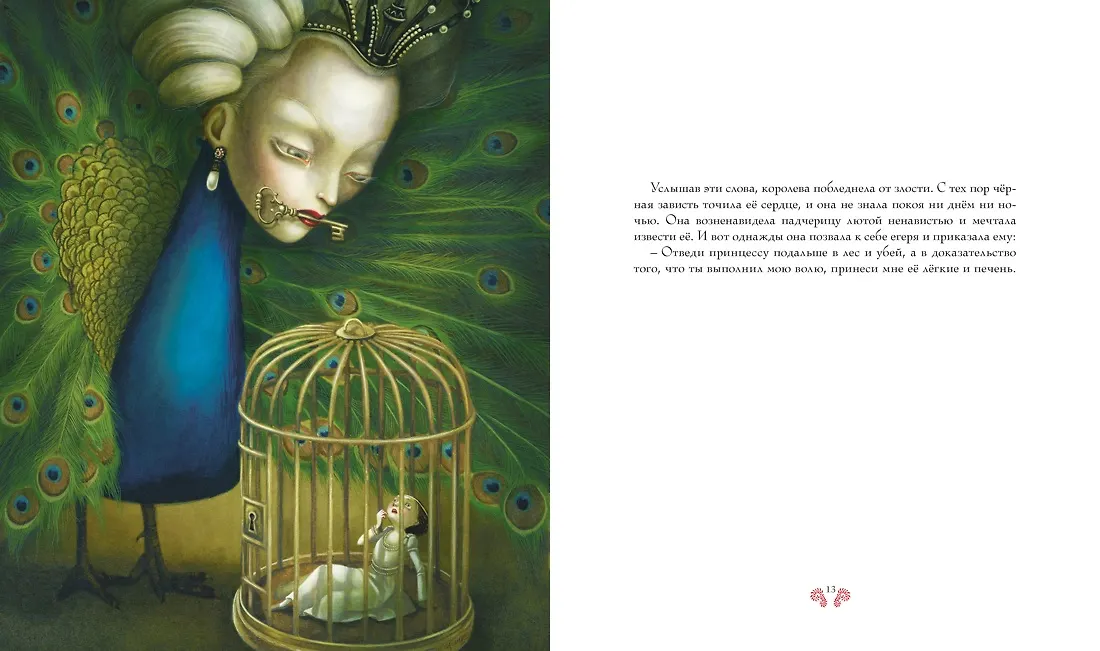 Белоснежка – юная красавица с бледной, как снег, кожей, тёмными, как ночь, волосами и алыми, как кровь, губами и румянцем, обречена на смерть из-за ревности мачехи-колдуньи…
