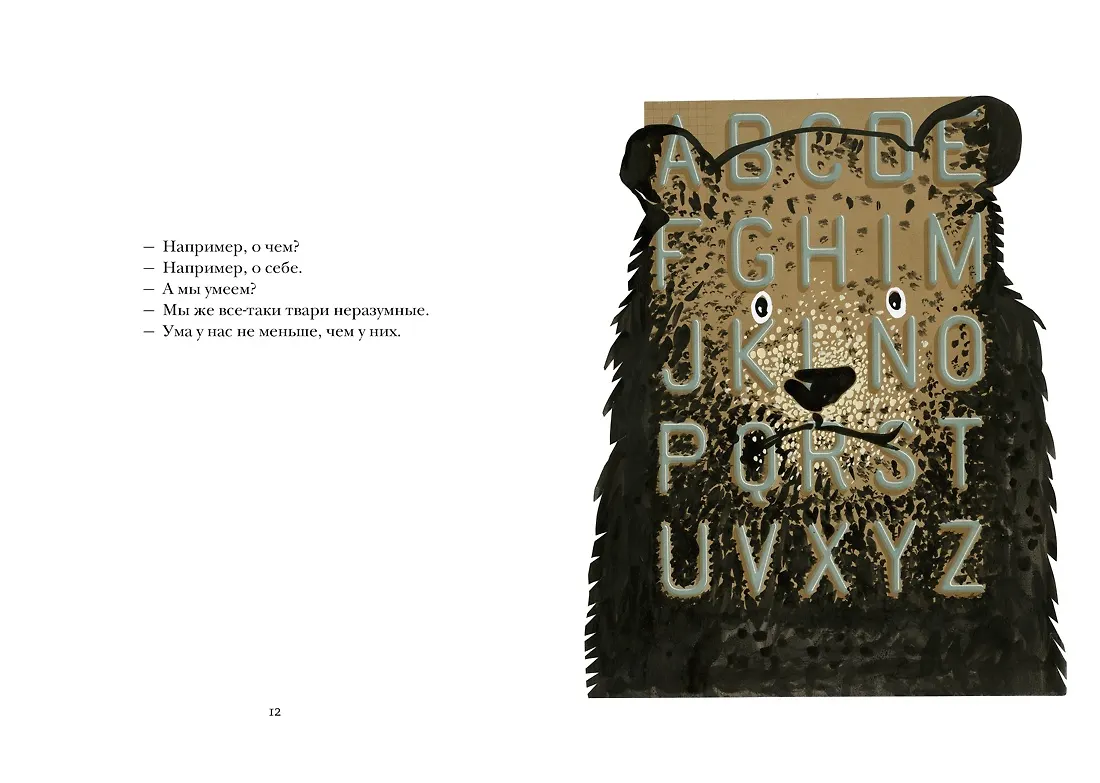 Перед вами изумительный плод сотрудничества одного из самых умных и глубоких писателей современности с одним из самых самобытных художников. Артбук «Звери в буквах» — «Алиса в Стране чудес» пополам с Платоном, «Обитатели холмов», начитавшиеся Лафонтена, лаконичная сказка, глубокая притча и выставка, куда заглядываешь случайно и мимоходом, а потом полдня не находишь в себе сил уйти и советуешь ее всем друзьям и знакомым. Нам вслед устремлены глаза, которые пристально наблюдают каждый день. После нашего исчезновения звучат голоса, которые мы привыкли не замечать.