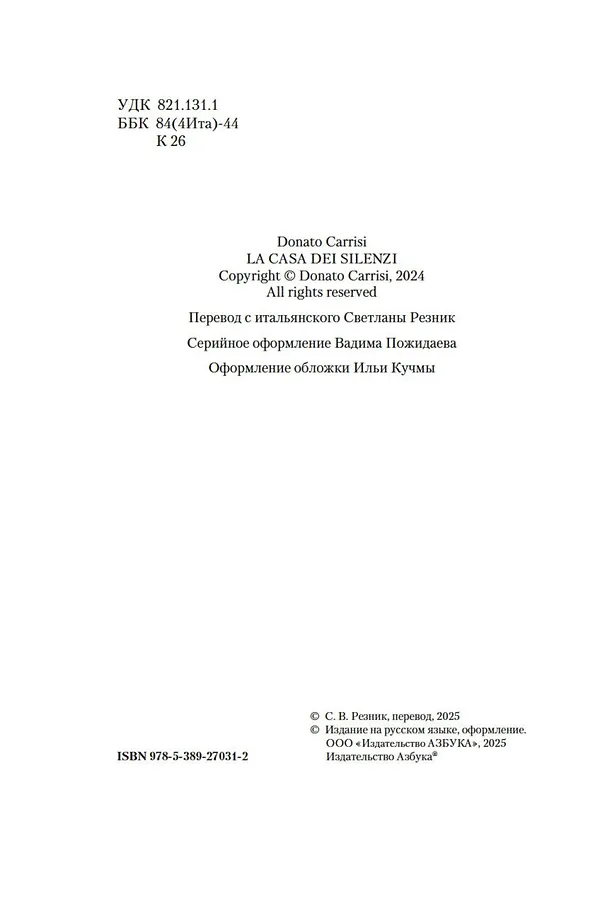 «Дом молчания», продолжение бестселлеров Донато Карризи «Дом голосов», «Дом без воспоминаний» и «Дом огней», — впервые на русском!