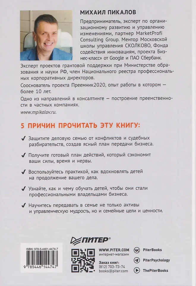 Теория иллюстрируется многими примерами из российской и зарубежной практики, среди которых есть яркие примеры из личного опыта автора. Издание раскрывает секреты владельческой преемственности для разных ситуаций, в которых многие владельцы и преемники могут увидеть себя.