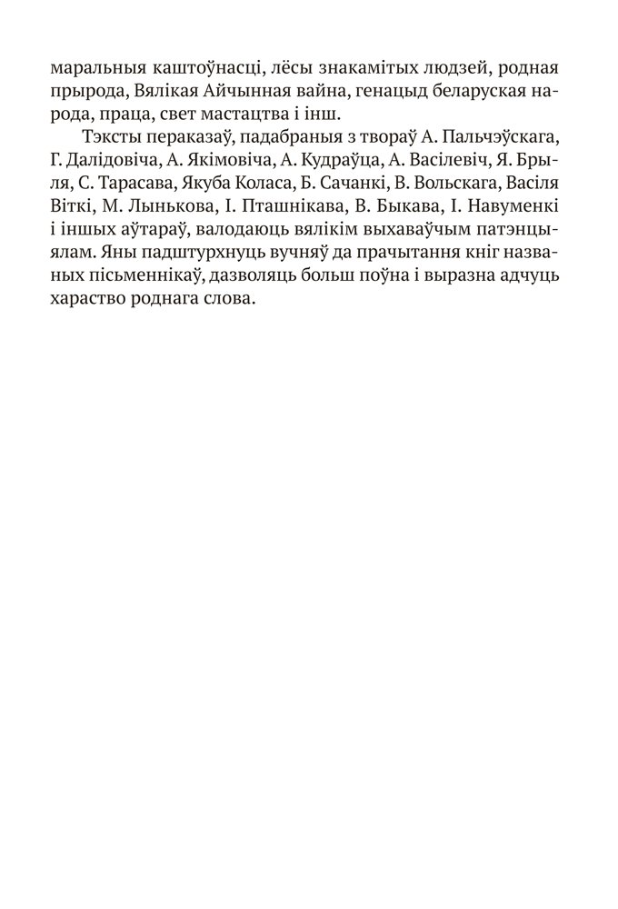 Дапаможнік прызначаны для правядзення навучальных пераказаў па беларускай мове ў 5—9 класах. Ён адпавядае вучэбнай праграме і патрабаванням метадычных рэкамендацый па фарміраванні культуры вуснага і пісьмовага маўлення. Да ўсіх відаў пераказаў падаецца па некалькі тэкстаў, якія адрозніваюцца паміж сабой складанасцю і разлічаны на розны ўзровень падрыхтаванасці вучняў.