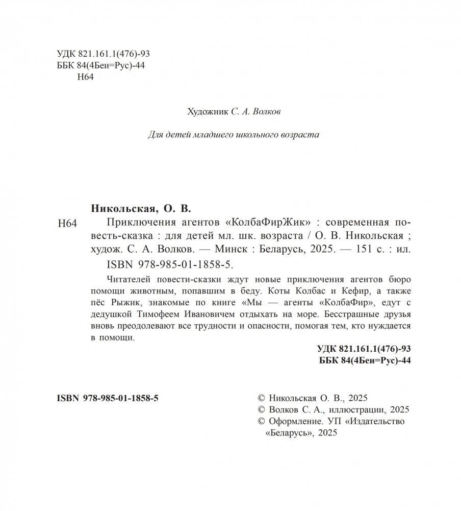 Читателей повести-сказки ждут новые приключения агентов бюро помощи животным, попавшим в беду. Коты Колбас и Кефир, а также пёс Рыжик, знакомые по книге «Мы — агенты «КолбаФир», едут с дедушкой Тимофеем Ивановичем отдыхать на море. Бесстрашные друзья вновь преодолевают все трудности и опасности, помогая тем, кто нуждается в помощи.