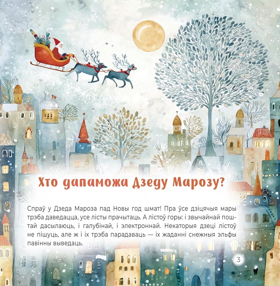 У кнігу Алены Міхаленка ўвайшлі тры казкі, прысвечаныя любімым зімовым святам: Новаму году і Калядам, часу сюрпрызаў і цудаў. У першай казцы Дзед Мароз, які вязе падарункі беларускім дзецям, сустракае перашкоду: цёплае надвор’е, з-за якога падарожжа на паўночных аленях немагчымае. Другая казка — пра таленавіты гарэзлівы зімовы ветрык, які любіць маляваць на аконным шкле. А трэцяя — пра хлопчыка, які марыў пра сабаку, і шчанюка, які шукаў дом, пра любоў і дабрыню.