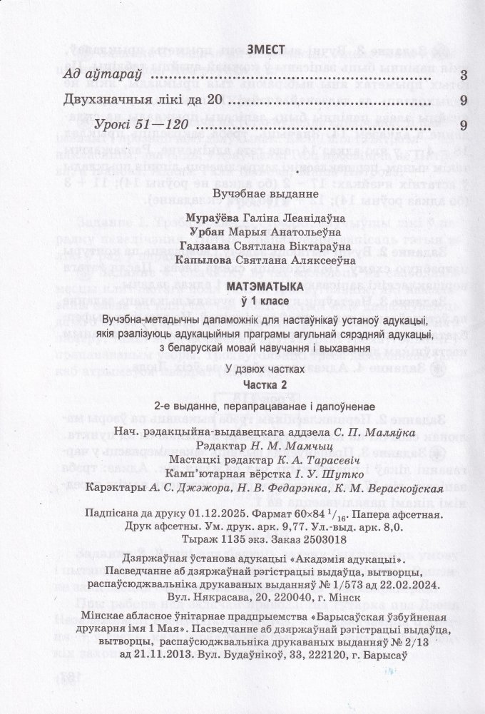 Матэматыка ў 1 класе. Частка 2. Вучэбна-метадычны дапаможнік. ГРЫФ