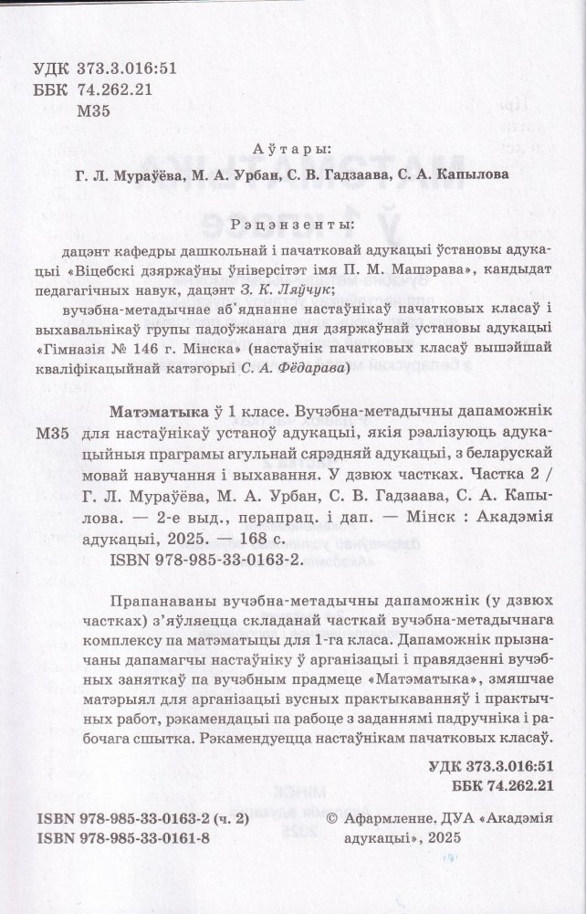 Прапанаваны вучэбна-метадычны дапаможнік (у дзвюх частках) з'яўляецца складанай часткай вучэбна-метадычнага комплексу па матэматыцы для 1-га класа. Дапаможнік прызначаны дапамагчы настаўніку ў арганізацыі і правядзенні вучэбных заняткаў па вучэбным прадмеце "Матэматыка", змяшчае матэрыял для арганізацыі вусных практыкаванняў і практычных работ, рэкамендацыі па рабоце з заданнямі падручніка і рабочага сшытка. Рэкамендуецца настаўнікам пачатковых класаў.