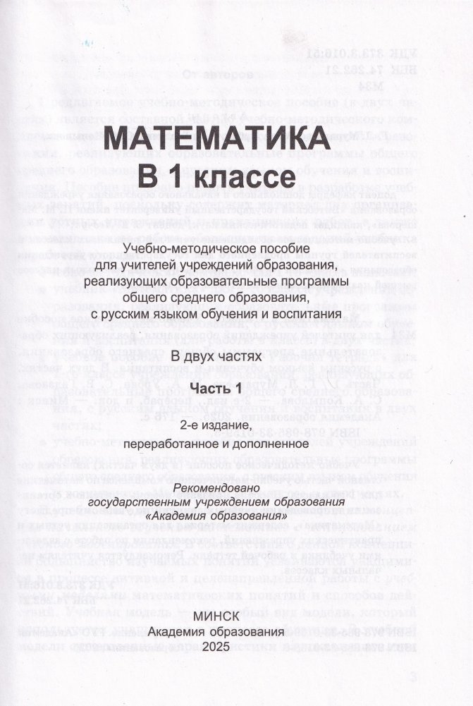 Учебно-методическое пособие (в двух частях) является составной частью учебно-методического комплекса по математике для 1-го класса. Пособие призвано помочь учителю в организации и проведении учебных занятий по учебному предмету "Математика", содержит материал для организации устных и практических упражнений, рекомендации по работе с заданиями учебника и рабочей тетради.