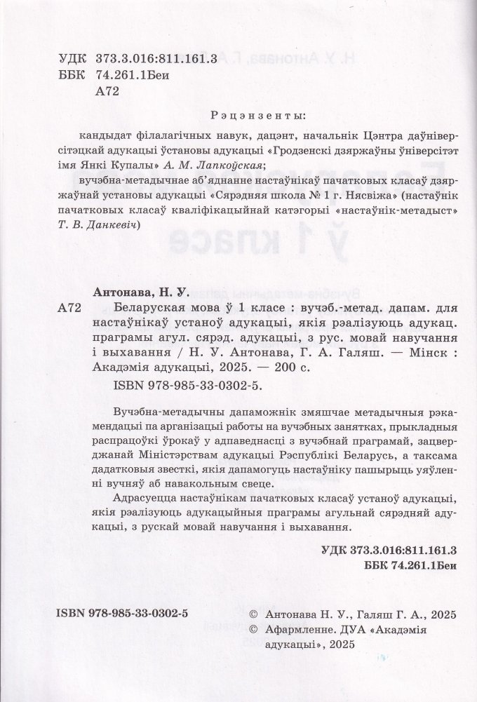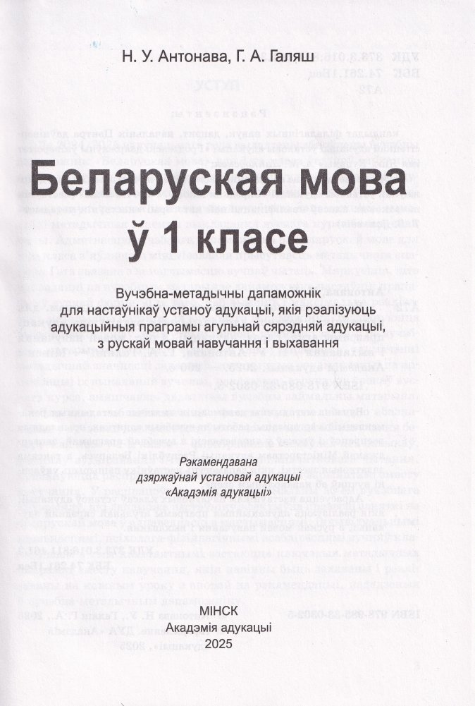 Беларуская мова ў 1 класе. Вучэбна-метадычны дапаможнік. ГРЫФ