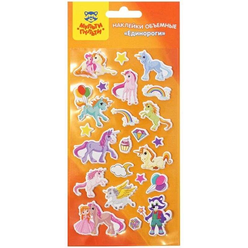 Наклейки объемные Мульти-Пульти "Единороги", 10х22 см, 23 наклейки, инд. уп., европодвес. Арт. PS_29326