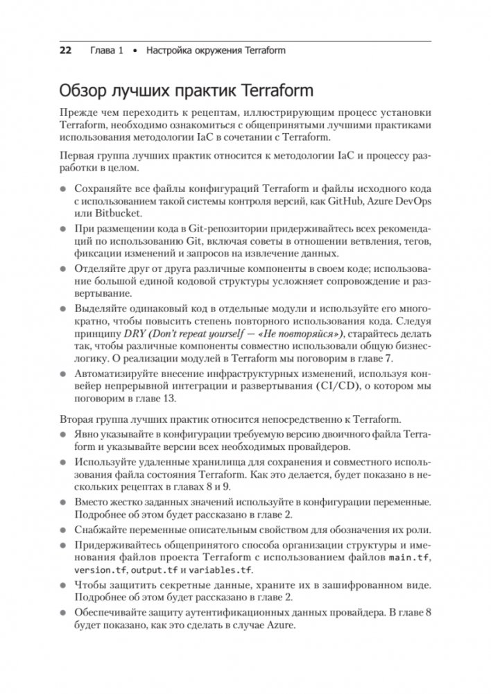 Кроме того, в издание добавлено несколько новых глав, в которых описывается использование Terraform вместе с Docker и Kubernetes, рассматриваются сложные вопросы, связанные с практикой GitOps, и объясняется, как тестировать конфигурации Terraform с помощью различных инструментов и проверять их соответствие требованиям безопасности. В последней главе исследуются вопросы устранения распространенных проблем с Terraform и предлагаются решения для часто встречающихся ошибок.
