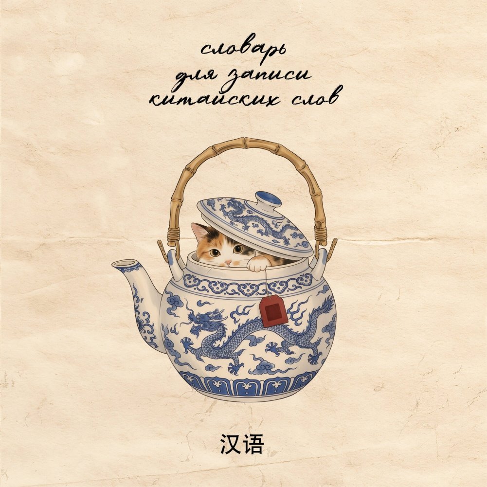 Словарь для записи китайских слов (15х15 см) (Котик в чайнике)
