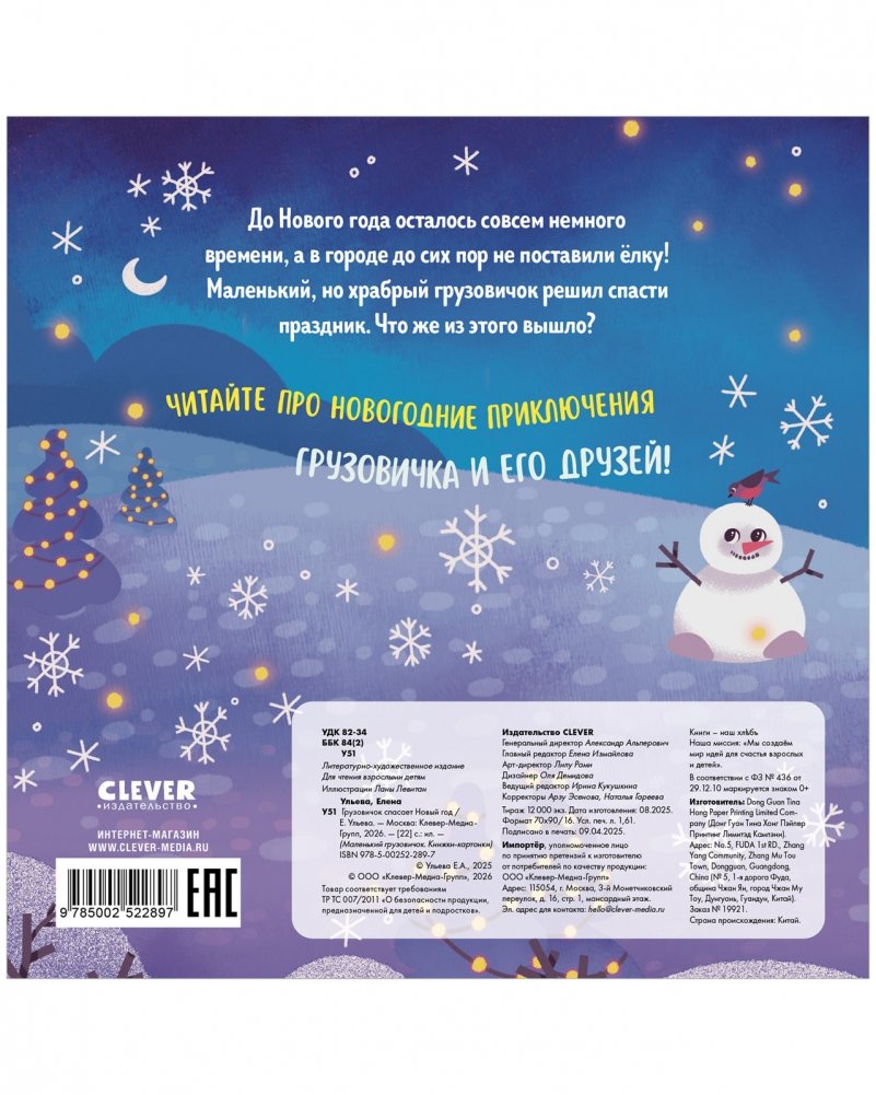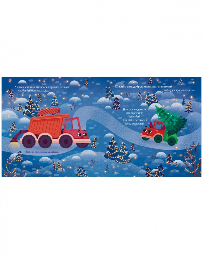 Эта добрая книжка для малышей с симпатичными иллюстрациями зарядит детей и взрослых праздничным настроением. Вместе с храбрым грузовичком ребенок научится дружбе и познакомится со снегоуборочным транспортом, а еще потренирует внимание и сообразительность с помощью развивающих заданий.