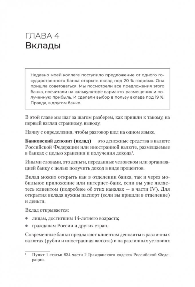 Честный и подробный гид по миру банковских продуктов от эксперта с 20-летним опытом работы в банковской сфере. Вы узнаете, как банки скрывают важные условия «мелким шрифтом», как избежать финансовых ловушек и выбрать выгодные предложения. Автор разбирает вклады, кредиты, карты, страхование, инвестиции и цифровые деньги на реальных примерах.