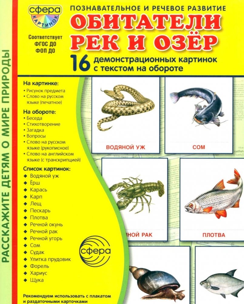Обитатели рек и озер. 16 демонстрационных картинок с текстом на обороте