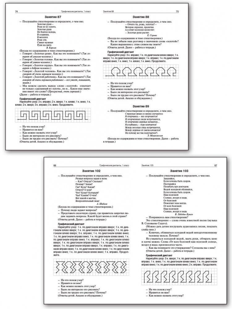 Пособие содержит конспекты занятий, разработаннные в соответствии с требованиями Федерального государственного образовательного стандарта начального общего образования. Графические задания позволяют не только осуществлять подготовку руки к письму, но и формировать умение ориентироваться на бумаге в клетку, что необходимо для уроков математики; способствуют развитию памяти, воображения, умений анализировать и сравнивать, концентрировать внимание. Предназначается учителям начальной школы, а также студентам педагогических вузов и колледжей. Может использоваться в работе с детьми дошкольного возраста.