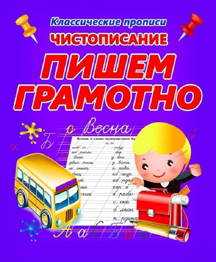Пропись "Чистописание. Пишем грамотно" поможет вашему малышу стать грамотным. Ребенок научится правильно вставлять в слова пропущенные гласные или согласные буквы.