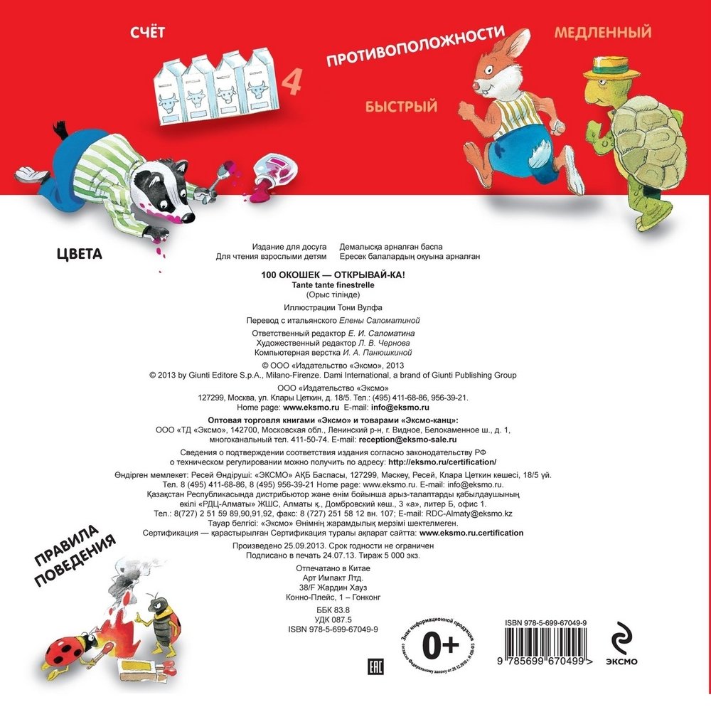 Эта книга наверняка станет одной из самых любимых у вашего малыша – ведь дети в возрасте 2-3-х лет обожают манипулировать предметами, и книга с окошками – это прекрасный объект для их маленьких пальчиков. Каждый раз, когда малыш своей крошечной ручкой открывает окошко в книге, он становится умнее, потому что совершает целенаправленное осознанное движение пальчиками, а развивающий импульс в этот момент поступает в мозг. А если малыш при этом рассматривает замечательные иллюстрации Тони Вулфа, если он вместе с мамой или бабушкой учится считать, называет цвета или рассказывает, чем отличаются друг от друга времена года – то становится ясно, что такая книга непременно должна быть у каждого ребенка.