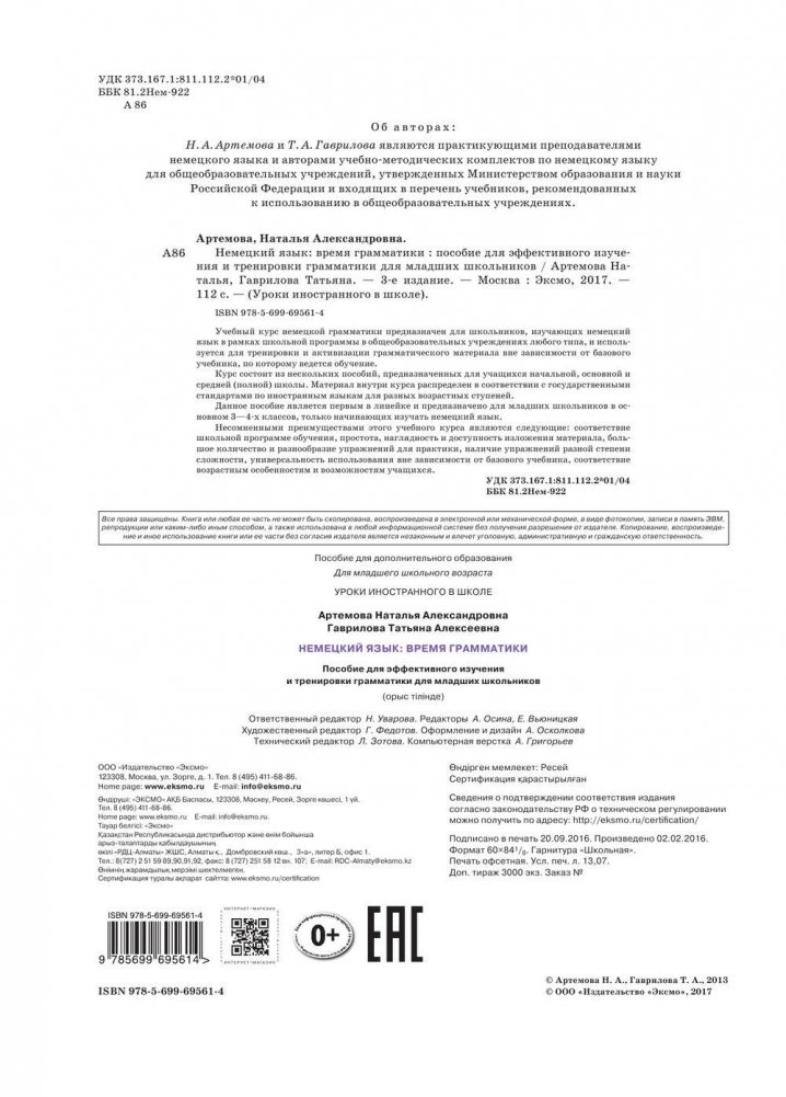 Немецкий язык: время грамматики. Пособие для эффективного изучения и тренировки грамматики для младших школьников