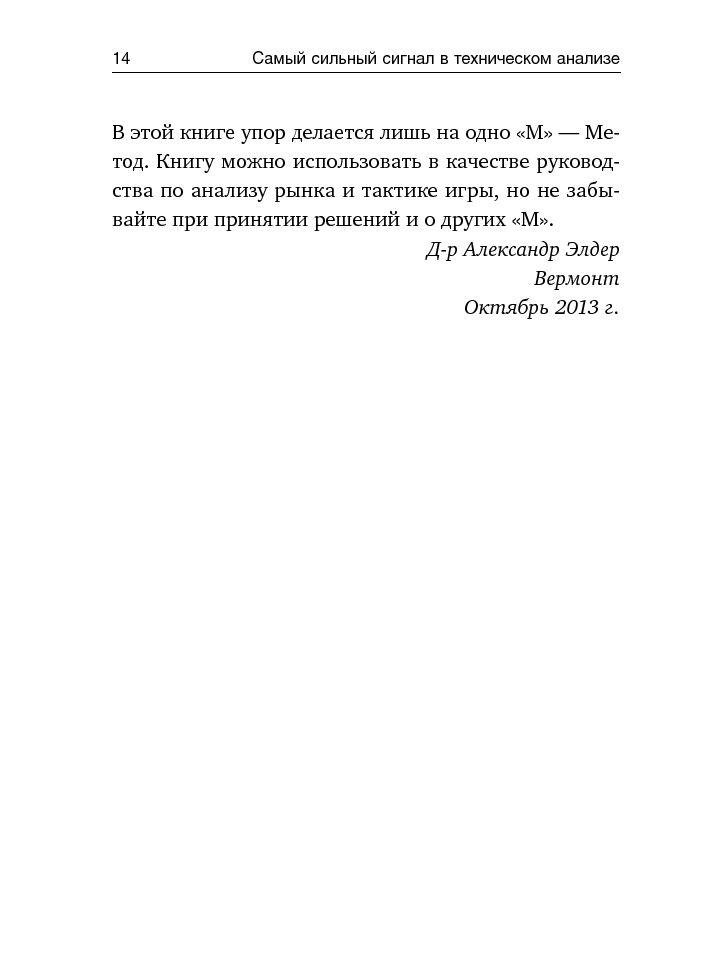 Расхождение — самый надежный и оперативный сигнал разворота тренда. Александр Элдер, один из ведущих мировых специалистов по трейдингу, показывает, как на практике использовать расхождение (несогласованность поведения индикаторов и цен). Книга будет интересна как долгосрочным инвесторам и трейдерам, так и специалистам по внутридневной торговле. Она написана доступным языком и содержит упражнения для закрепления материала.