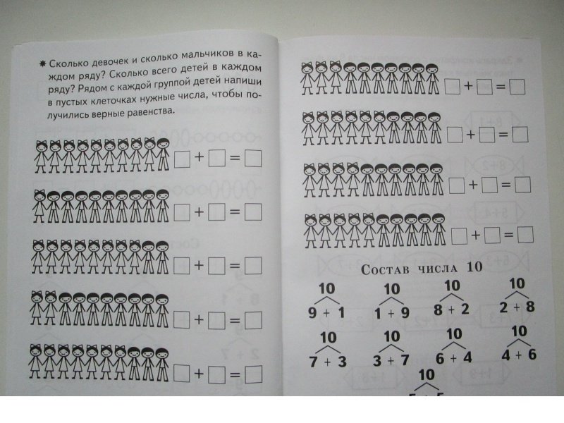 Предлагаем вашему вниманию задания на изучение состава чисел первого десятка для детей 5-6 лет. Тетрадь рассчитана на совместную работу родителей и детей. Она может быть использована также в детских дошкольных учреждениях.