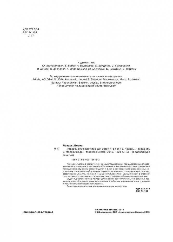 Книга составлена в соответствии с новым Федеральным государственным образовательным стандартом дошкольного образования и воспитания и станет прекрасным помощником в обучении и развитии детей 4-5 лет. В ней представлены все основные направления дошкольного образования: грамота, математика, подготовка руки к письму, развитие речи, памяти, внимания и мышления. Кроме того, малыши узнают о строении тела человека, познакомятся с этикетом и смогут собрать забавные поделки-оригами. Задания, расположенные по мере усложнения и ориентированные на реальные возможности детей, а так же яркие иллюстрации и забавные упражнения помогут развить интеллектуальные способности ребенка. Адресовано талантливым малышам, родителям и педагогам.