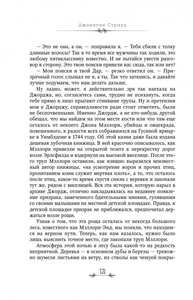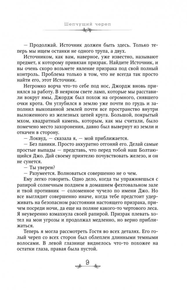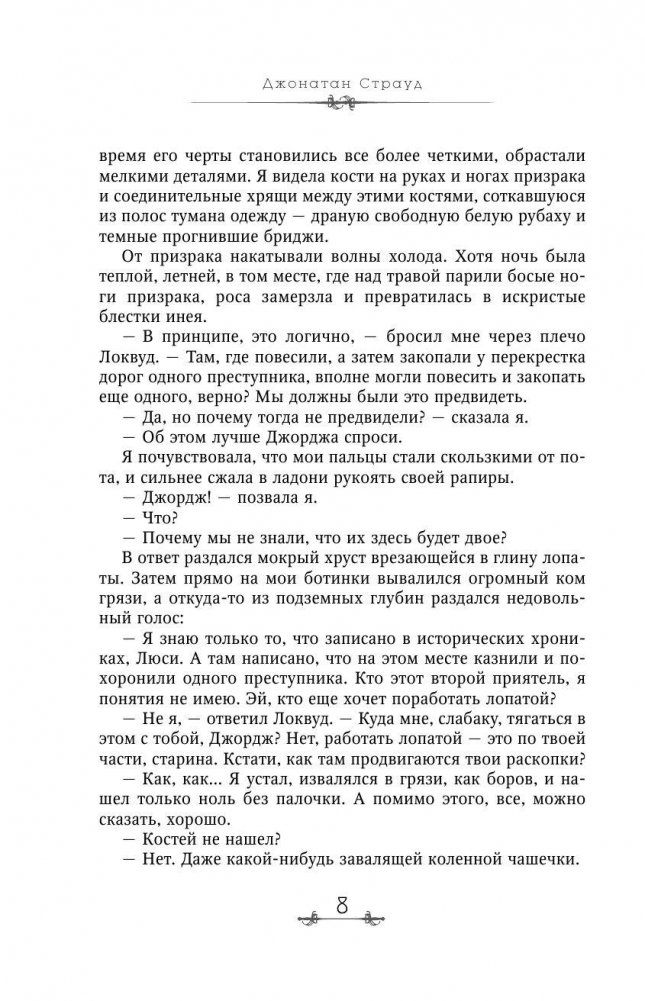 Меня зовут Люси Карлайл и я работаю в агентстве "Локвуд и компания". Нас всего трое: я, Энтони (он же Локвуд) и Джордж. Мы занимаемся тем, что ловим призраков и спасаем от них Лондон. Вообще-то, это только звучит просто, на самом деле все гораздо сложнее. Существует великое множество призраков и их разновидностей, и большинство из них смертельно опасны, и даже наше супероружие: рапиры, железные цепи и банки с греческим огнем - не всегда эффективно. Впрочем, в нашем агентстве трусов нет. Кажется, наши задания раз от раза становятся сложнее. В одной из могил, которую нам пришлось вскрыть, было обнаружено древнее костяное зеркало, обладающее чудовищной силой. Все, кто когда либо в него смотрел, умирали в страшных мучениях. Поговаривают, что его создал свихнувшийся некромант из самых настоящих человеческих костей. Бр-р-р! Лучше даже не думать об этом. Теперь мне, Локвуду и Джорджу предстоит не только разобраться с этой смертельной загадкой, но и устоять перед искушением самим заглянуть в страшное зеркало, которое, кажется, обладает собственной волей. Короче говоря, очередное дело для чокнутых агентов!