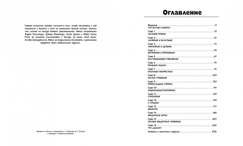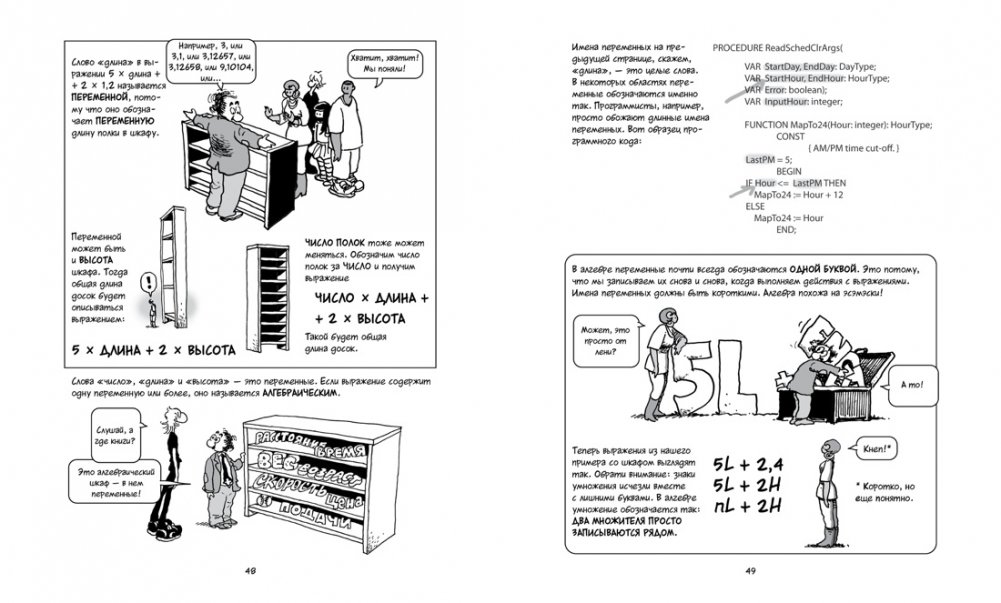 Новая книга всемирно знаменитого карикатуриста Ларри Гоника, изучавшего и преподававшего математику в Гарвардском университете, представляет собой интенсивный курс алгебры, охватывающий ряд основных тем школьной программы, включая линейные уравнения, многочлены, квадратные уравнения, построение кривых. С живым юмором автор делает экскурс в историю алгебры и приводит многочисленные примеры практического применения «царицы наук» в современной жизни. Уникальная способность Гоника преподносить сложный материал весело, интересно и легко для восприятия, да еще и в безупречно ясном, структурированном виде, делает эту книгу отличным пособием для школьников и студентов, а также для всех желающих поддержать в форме свои математические способности.
