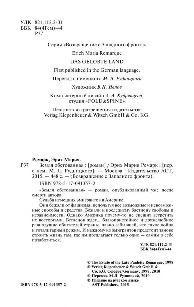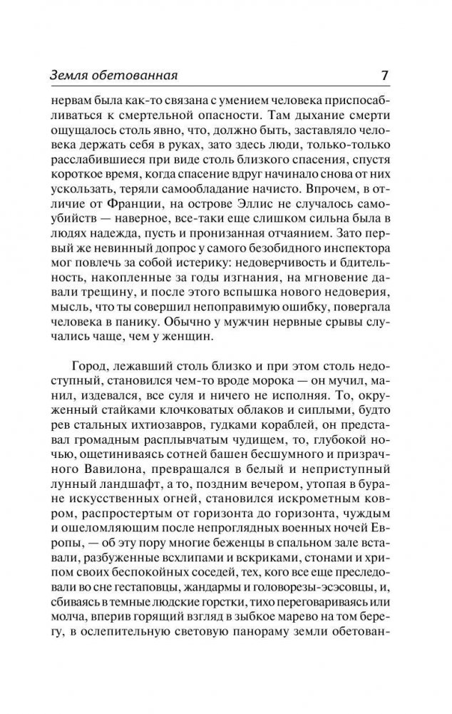 "Земля обетованная" — роман, опубликованный уже после смерти автора. Судьба немецких эмигрантов в Америке. Они бежали от фашизма, используя все возможные и невозможные способы и средства. Бежали к последнему бастиону свободы и независимости. Однако Америка почему-то не спешит встретить их восторгами. Беглецов ждет… благопристойное и дружелюбное равнодушие обитателей страны, давно забывшей, что такое война и тоталитарный режим. И каждому из эмигрантов предстоит заново строить жизнь там, где им предлагают только одно — самим о себе позаботиться.