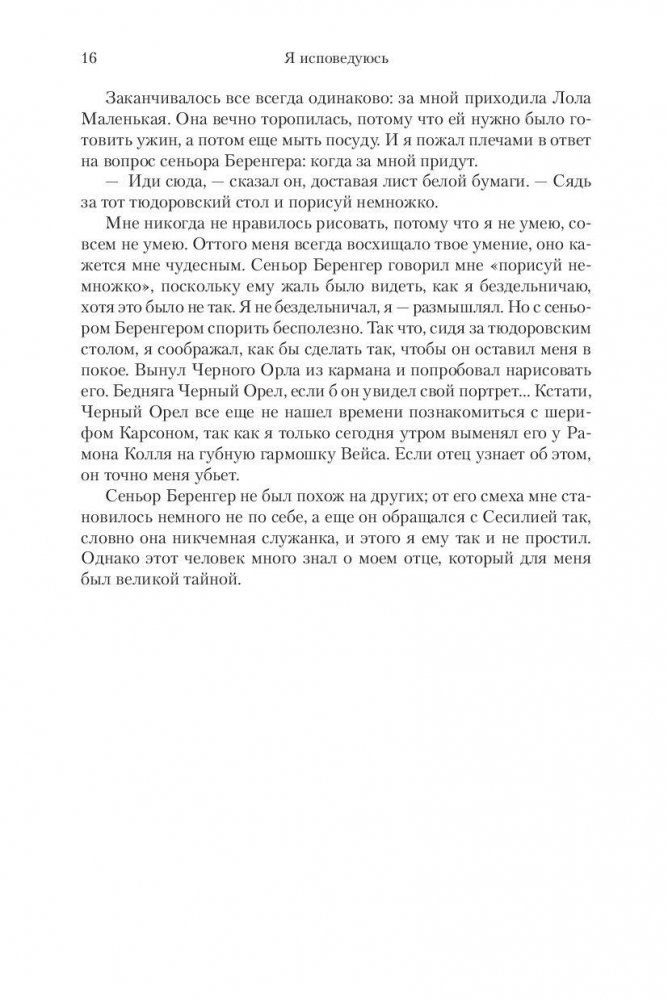 Впервые на русском языке роман выдающегося каталонского писателя Жауме Кабре «Я исповедуюсь». Книга переведена на двенадцать языков, а ее суммарный тираж приближается к полумиллиону экземпляров. Герой романа Адриа Ардевол, музыкант, знаток искусства, полиглот, пересматривает свою жизнь, прежде чем незримая метла одно за другим сметет из его памяти все события. Он вспоминает детство и любовную заботу няни Лолы, холодную и прагматичную мать, эрудита-отца с его загадочной судьбой. Наиболее ценным сокровищем принадлежавшего отцу антикварного магазина была старинная скрипка Сториони, на которой лежала тень давнего преступления. Однако оказывается, что история жизни Адриа несводима к нескольким десятилетиям, все началось много веков назад, в каталонском монастыре Сан-Пере дел Бургал, а звуки фантастически совершенной скрипки, созданной кремонским мастером, магически преображают людские судьбы. В итоге мир героя романа наводняют мрачные тайны и мистические загадки, на решение которых потребуются годы.