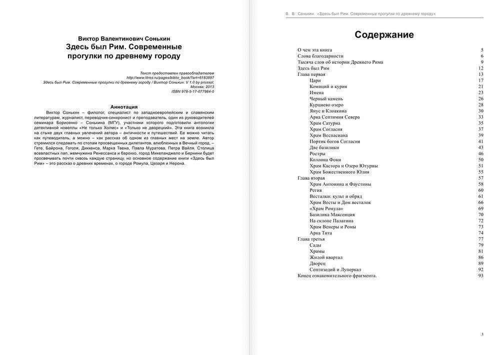 Виктор Сонькин - филолог, специалист по западноевропейским и славянским литературам, журналист, переводчик-синхронист и преподаватель, один из руководителей семинара Борисенко-Сонькина (МГУ), участники которого подготовили антологии детективной новеллы "Не только Холмс" и "Только не дворецкий". Эта книга возникла на стыке двух главных увлечений автора - античности и путешествий. Ее можно читать как путеводитель, а можно - как рассказ об одном из главных мест на земле. Автор стремился следовать по стопам просвещенных дилетантов, влюбленных в Вечный город, - Гёте, Байрона, Гоголя, Диккенса, Марка Твена, Павла Муратова, Петра Вайля. Столица всевластных пап, жемчужина Ренессанса и барокко, город Микеланджело и Бернини будет просвечивать почти сквозь каждую страницу, но основное содержание книги "Здесь был Рим" - это рассказ о древних временах, о городе Ромула, Цезаря и Нерона.