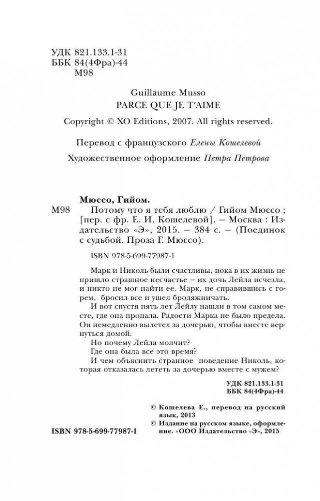 Марк и Николь были счастливы, пока в их жизнь не пришло страшное несчастье — их дочь Лейла исчезла, и никто не мог найти ее. Марк, не справившись с горем, бросил все и ушел бродяжничать. И вот, спустя пять лет Лейлу нашли в том самом месте, где она пропала. Радости Марка не было предела. Он немедленно вылетел за дочерью, чтобы вместе вернуться домой. Но почему Лейла молчит? Где она была все это время? И чем объяснить странное поведение Николь, которая отказалась лететь за дочерью вместе с мужем?