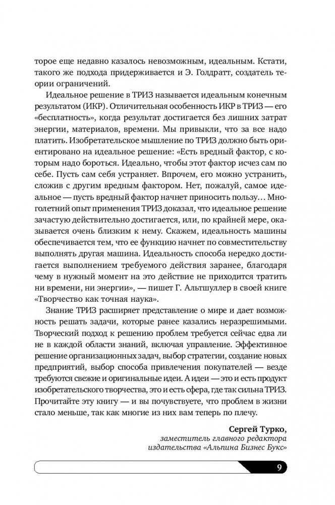 Постичь тайну творчества пытались многие, но только Генриху Сауловичу Альтшуллеру удалось создать стройную теорию решения изобретательских задач — ТРИЗ. Изучив десятки тысяч патентов и авторских свидетельств, Альтшуллер открыл основные законы изобретательства и показал, что процесс создания изобретений управляем. Процесс изобретательства требует правильной организации мышления, преодоления психологической инерции, стремления к идеальному решению, разрешения противоречия, скрытого в любой нестандартной задаче. ТРИЗ признана во всем мире и применяется для решения творческих задач во многих областях человеческой деятельности, начиная с конструирования и проектирования и заканчивая рекламой, PR, управлением. Книга будет интересна всем, кто стремится повысить эффективность творчества, и будет полезна не только изобретателям и инженерам, но и бизнесменам, менеджерам, людям творческих профессий, студентам и школьникам.