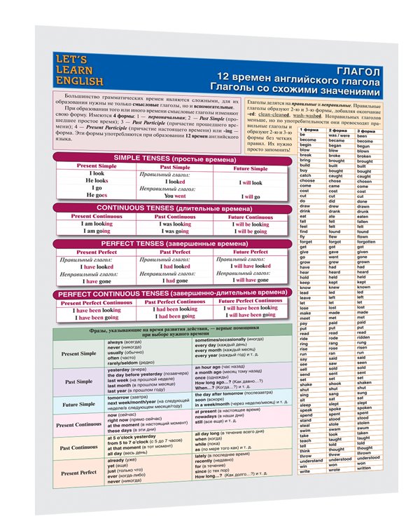 Справочные материалы. Глагол. 12 времен английского глагола. Глаголы со схожими значениями