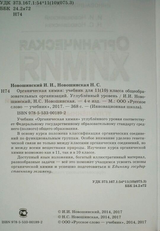 Органическая химия. 11 (10) класс. Углубленный уровень. Учебник. ФГОС